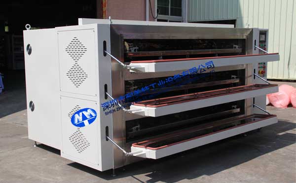 4、空氣加熱方式:由烤箱進氣口過濾后進風至加熱管風槽內,空氣經加熱后在烤箱內部做循環運風,廢氣從排氣口排出;